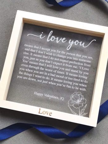The acrylic piece will be slid into the wooden frame to securely hold your vows upright and in place when on display. A keepsake that will truly last a lifetime.